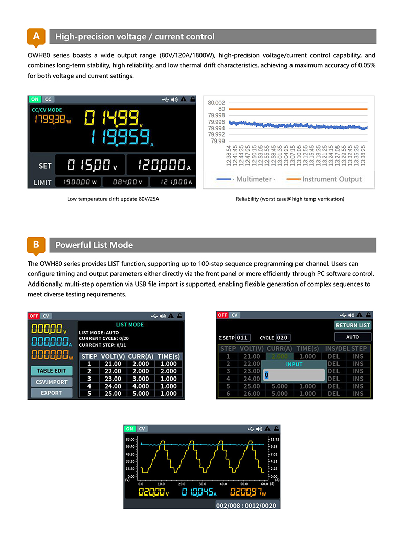 + High-Performance Power: 1800W/2000W output with 0.05% accuracy.