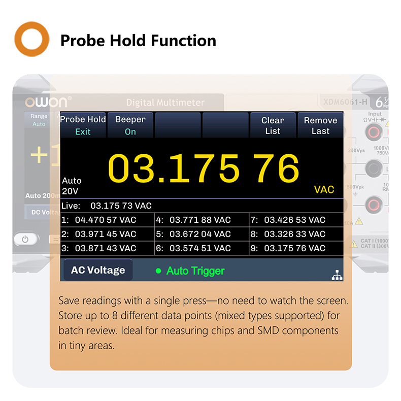 + Data Logger Function: records all measurement values in CSV format, with a fastest logging interval of 1ms, 2M points capacity, and expandable to 100M points via USB drive