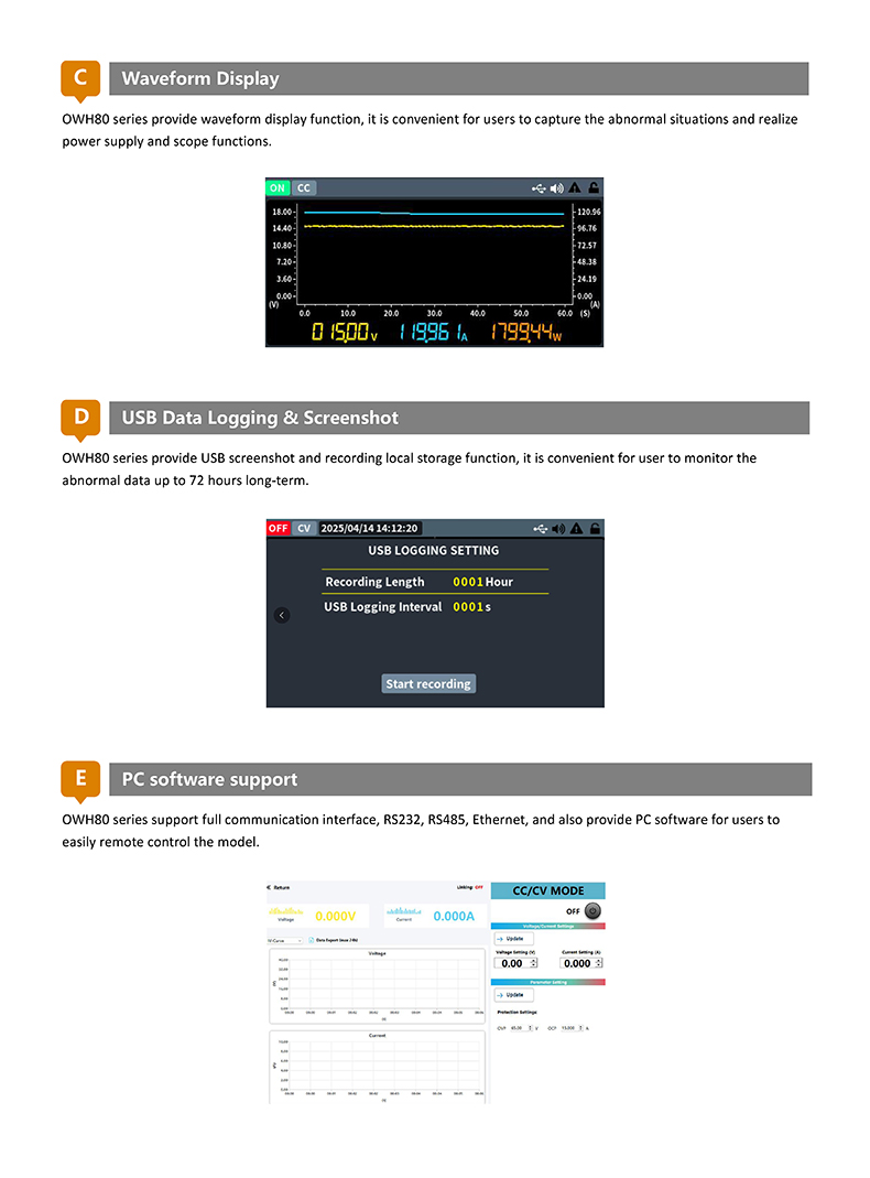 + High-Performance Power: 1800W/2000W output with 0.05% accuracy.