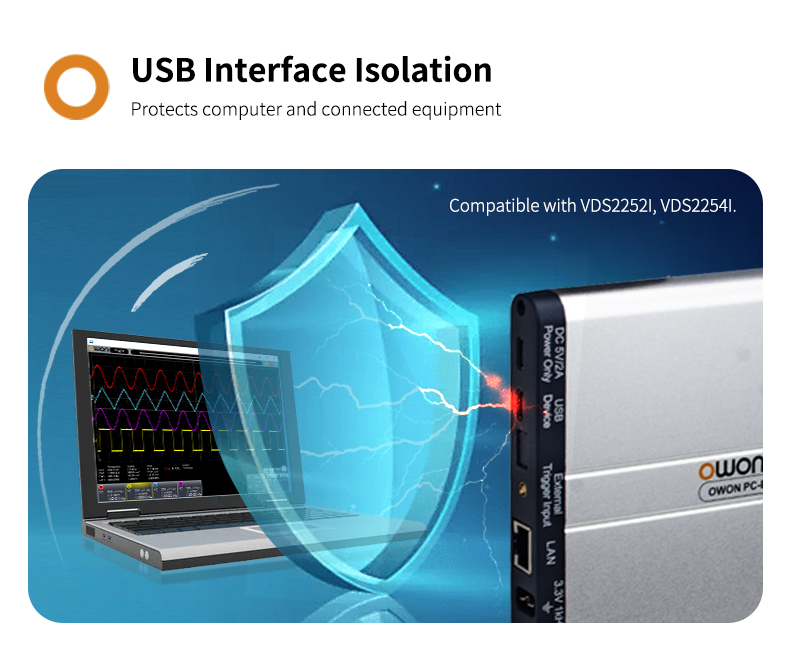+ USB Interface Isolation : Protects computers and measured analog signals from power supply and ground loop interference (VDS-I model)